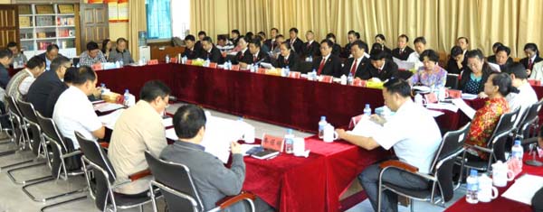 | 委员代表们在州中级人民法院听取情况汇报 |