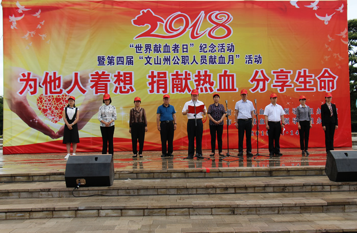 本站讯  6月14日,我州2018年“世界献血者日”暨第四届“公职人员献血月”活动在文山城七花广场举行。