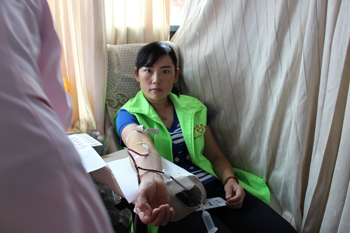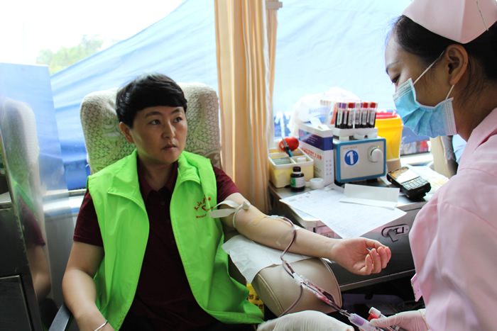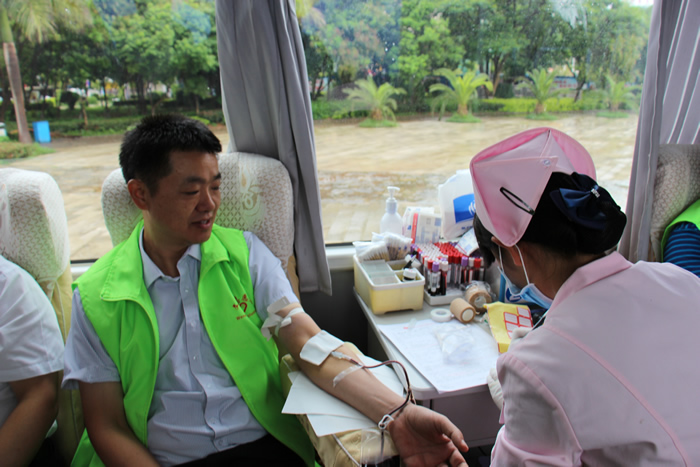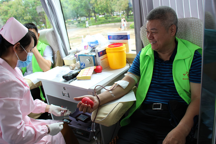 图为州人大常委会副主任张仁茂献血