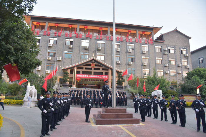 徐昌碧说,1949年10月1日,新中国第一面五星红旗在天安门广场冉冉升起,标志着新中国进入了一个新纪元。无数革命先辈,为争取民族解放、国家独立,抛头颅、洒热血,谱写了感召日月、名垂千古的壮丽史诗。在那段血与火的红色历史中,英雄的中华儿女,投身革命、保家卫国,用革命义举为新中国的成立作出了伟大贡献。今天,各族儿女与党同心、与祖国同行,艰苦奋斗、不懈努力,经济腾飞,人民安居乐业,实现了经济社会发展的全新跨越,正朝着伟大中国梦阔步前进。在中华人民共和国成立70周年之际,州人大常委会机关举行庄严的升国旗、唱国歌活动,是对祖国70年辉煌成就的深情歌颂,是对无数革命先烈的深情告慰,是开展“不忘初心、牢记使命”主题教育的重要举措,是机关文化建设、巩固全国文明单位的生动实践,必将进一步激发机关全体干部职工的爱国情怀,以更加昂扬的姿态,踏上新时代的伟大征程。