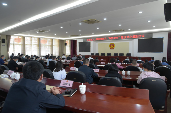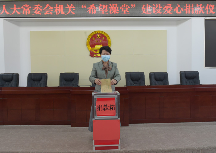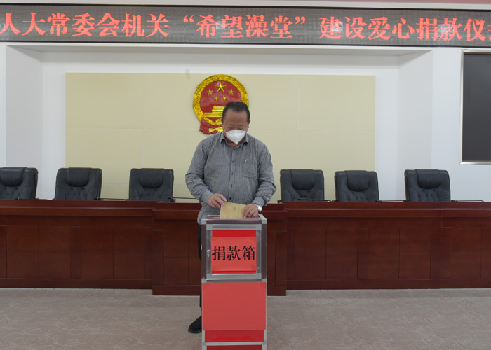 为积极响应州委州政府加大“希望澡堂”建设力度的倡议,4月22日下午,州人大常委会机关举行捐款仪式,州人大常委会主任王毅以委托他人代捐的形式带头开展“希望澡堂”爱心捐款活动,机关全体干部职工迅速行动,踊跃为“希望澡堂”建设捐款。据统计,此次捐款活动共91名干部职工参加,捐款总计40800元。