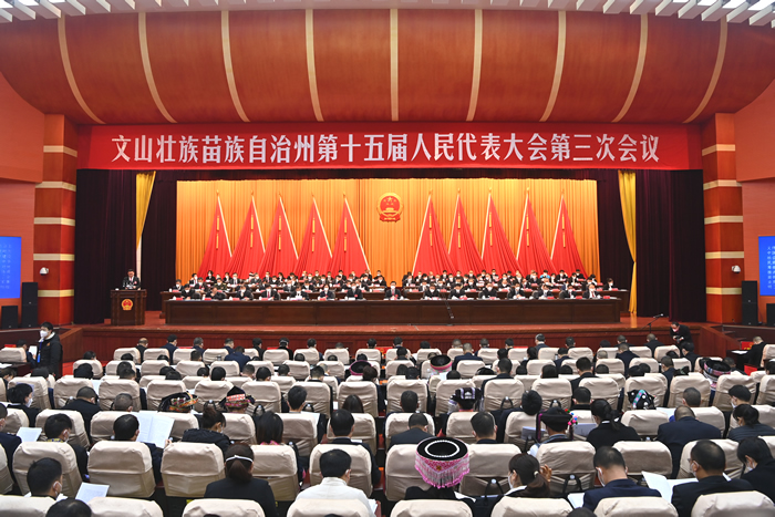1月7日上午,文山州第十五届人民代表大会第三次会议在文山会务中心报告大厅隆重开幕。