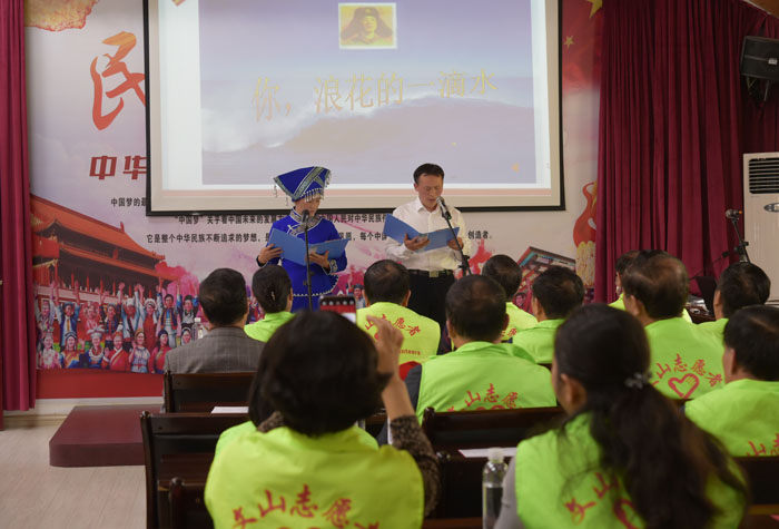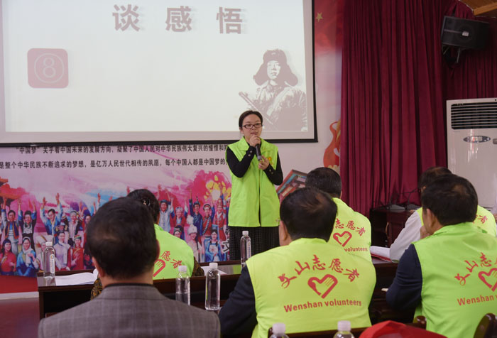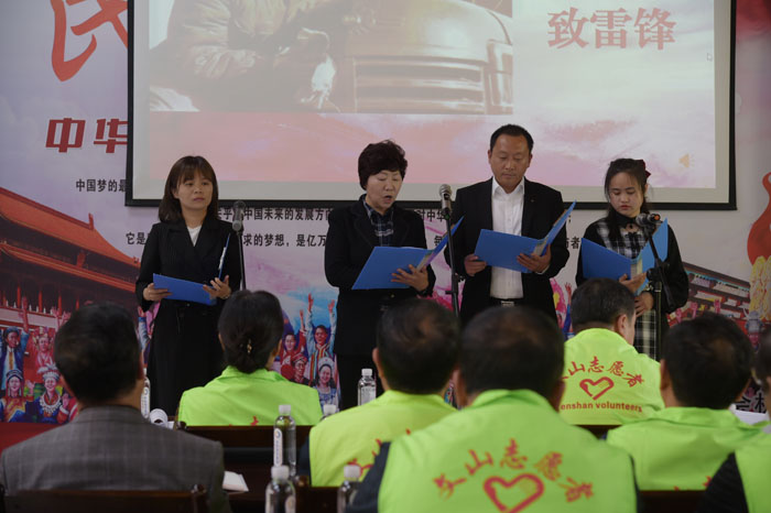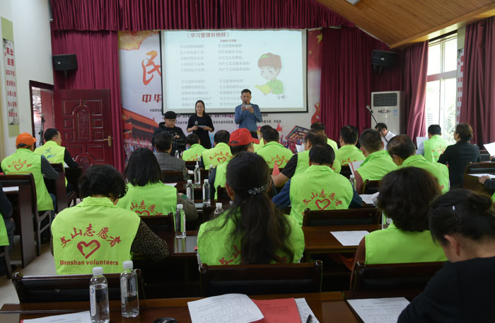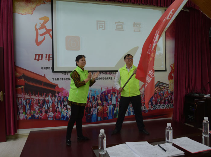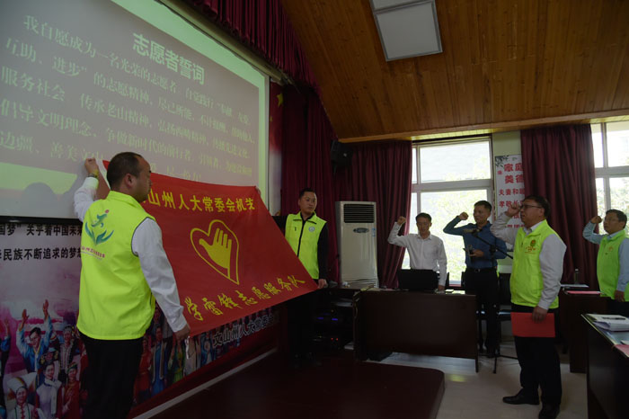 州人大常委会党组副书记、副主任李洁为志愿服务队授旗,杨廷友、段自勇为机关志愿者赠送并佩戴“文山州人大常委会机关志愿服务队”徽章。段自勇带领全体志愿者重温志愿者誓词。在“谈感悟”环节,2名志愿者代表表示,今后将以模范为榜样,学习他们乐施善行、助人为乐的精神,不断提高自身道德修养,更好地参与到志愿服务活动中去,以自己的实际行动诠释“全心全意为人民服务”的精神实质,奉献爱心,回报社会。