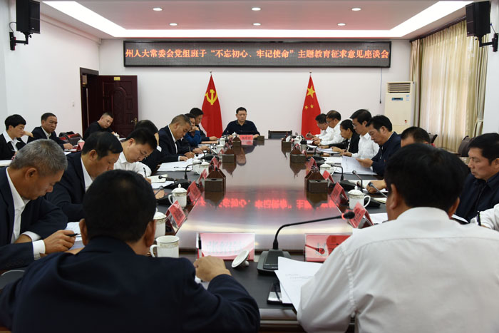 本站讯 10月16日下午,州人大常委会党组书记、主任徐昌碧主持召开州人大常委会党组班子及班子成员“不忘初心、牢记使命”主题教育征求意见座谈会。州委第十指导组组长张邦兴、副组长陆娟到会指导。