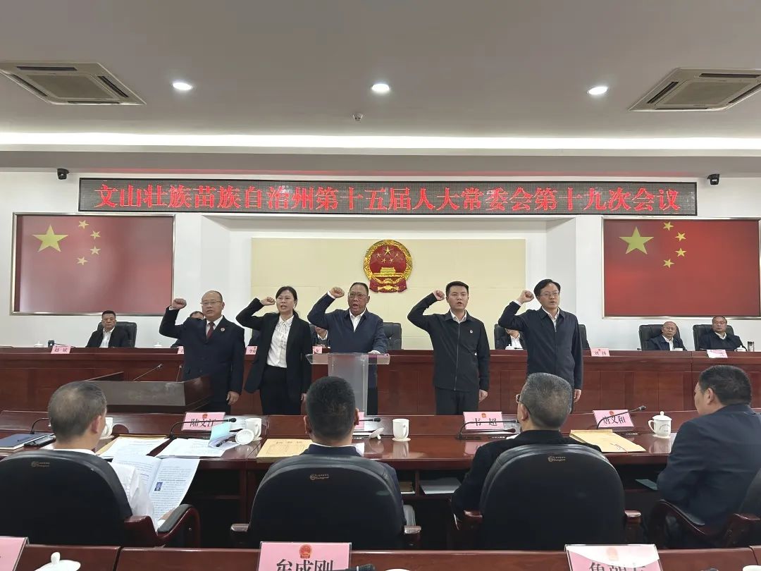 会议表决通过了《文山州人民代表大会常务委员会议事规则(修正草案)》;表决通过有关人事事项,王毅为新任职人员颁发任命书,新任职人员向宪法宣誓并作任职承诺。