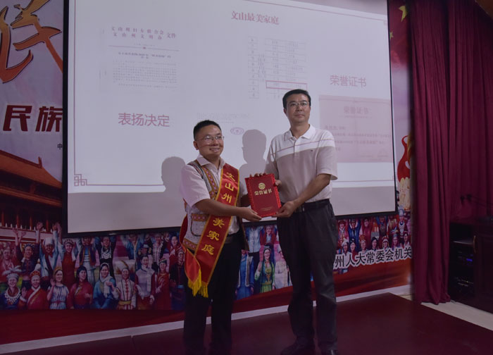 徐昌碧为“最美家庭”荣誉获得者陶树权颁发证书